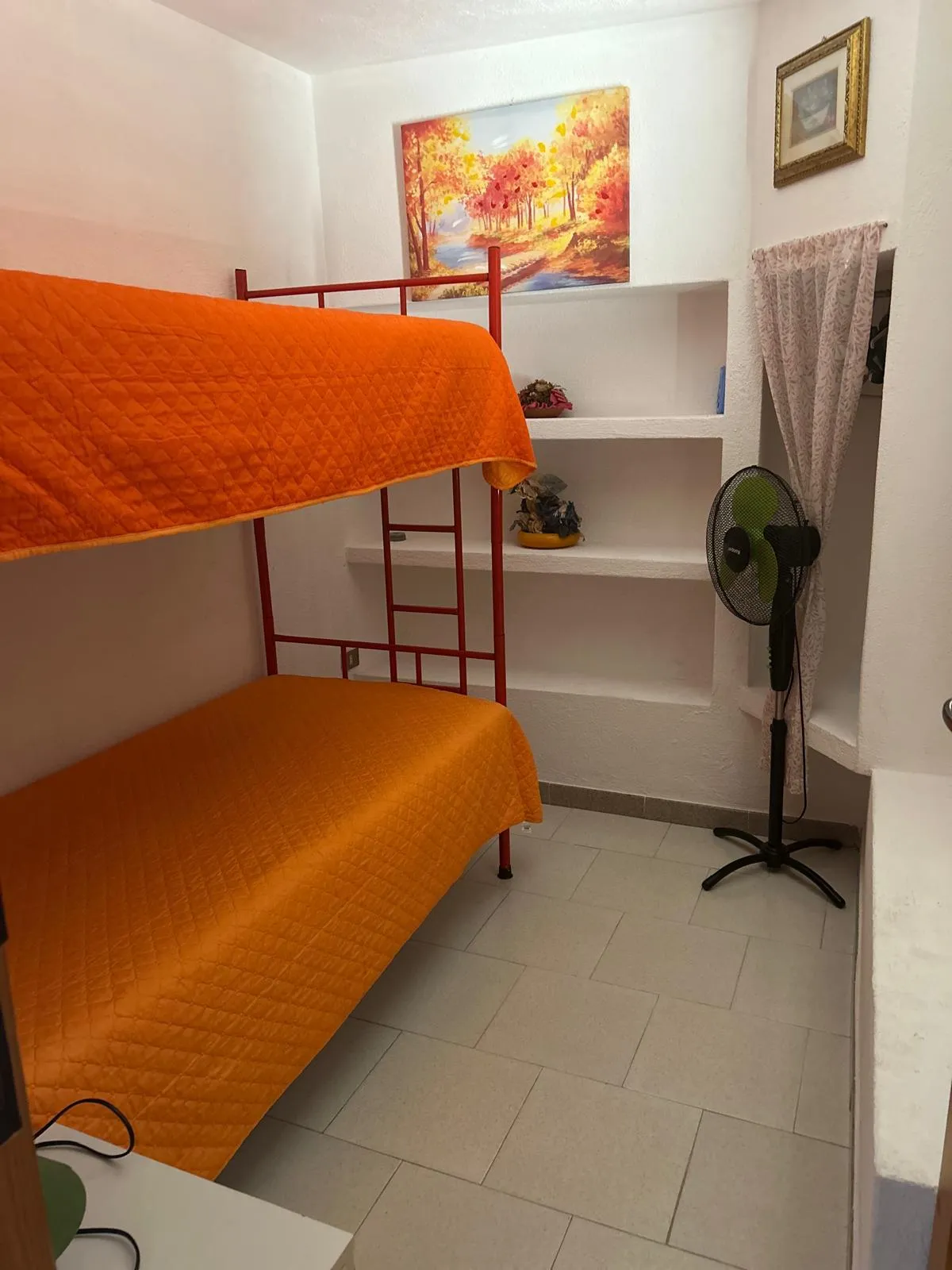 Appartamento di circa 70 m², ideale per famiglie o piccoli gruppi. Include una camera da letto (matrimoniale e una letto a castello), soggiorno con cucina, bagno e veranda esterna arredata.