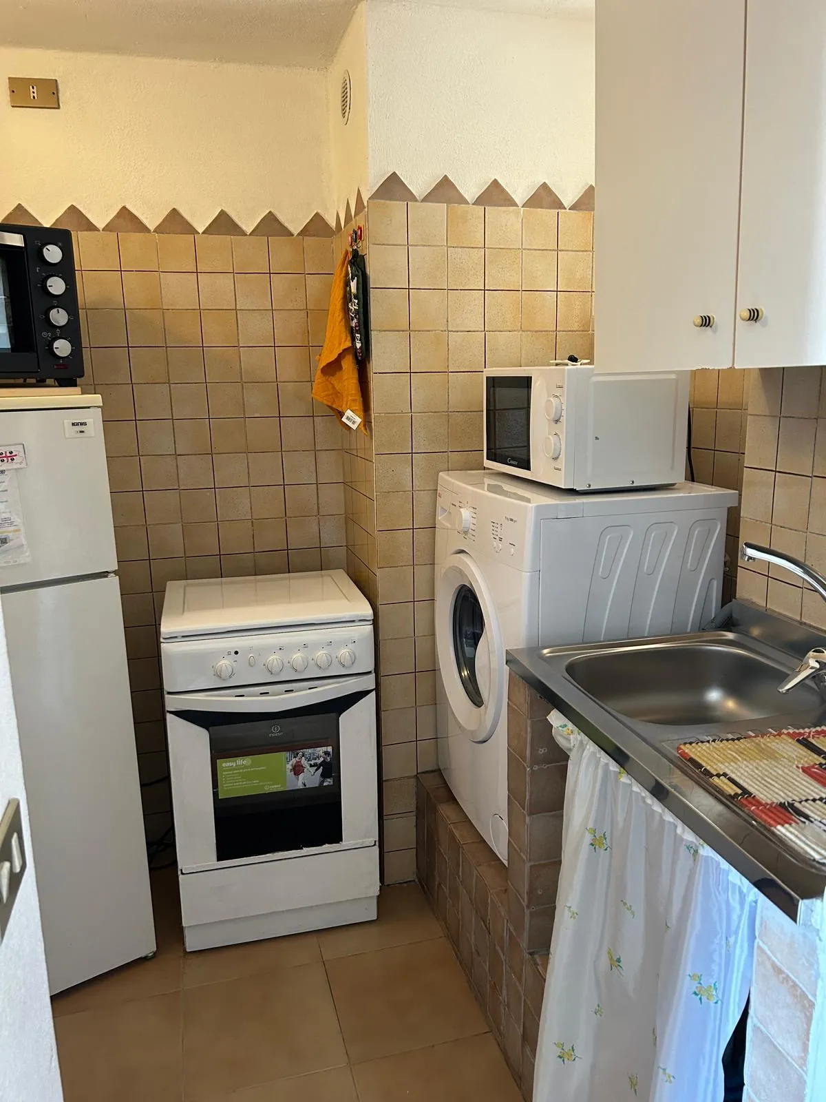 Appartamento di circa 65 m², perfetto per 5 persone. Composto da 2 camere matrimoniali e una camera con letto singolo, bagno, soggiorno con cucina open space e piccolo spazio esterno. Arredato con stile semplice e funzionale.